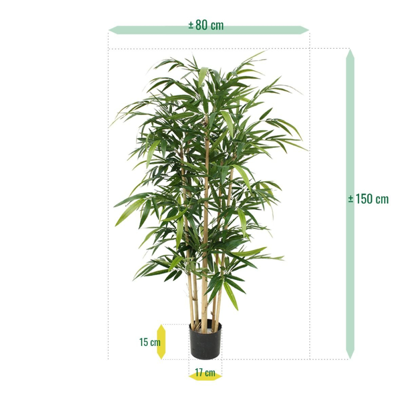 Maak kennis met onze absolute bestseller! Deze brandvertragende Bamboe Kunstboom 150cm is niet alleen een lust voor het oog, maar voldoet ook aan de hoogste veiligheidsstandaarden. Het is een kunstboom van een bijzondere topkwaliteit en een van onze meest natuurgetrouwe modellen.