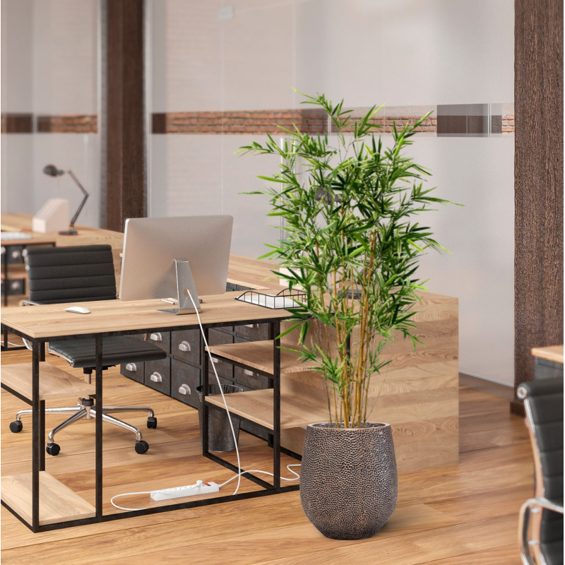 De Bonte Bamboe Kunstplant 170 cm wordt standaard in een neutrale plastic binnenpot geleverd. Dit maakt het eenvoudig om de plant direct en stevig in een mooie sierpot of plantenbak van jouw keuze te plaatsen.