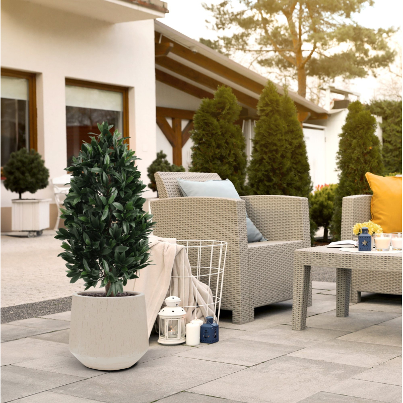 De Laurier Kunstplant Pyramide wordt geleverd in een stevige standaard pot (Ø17 x 15 cm). Plaats hem eenvoudig in een decoratieve pot naar keuze voor een nog luxere en complete uitstraling.