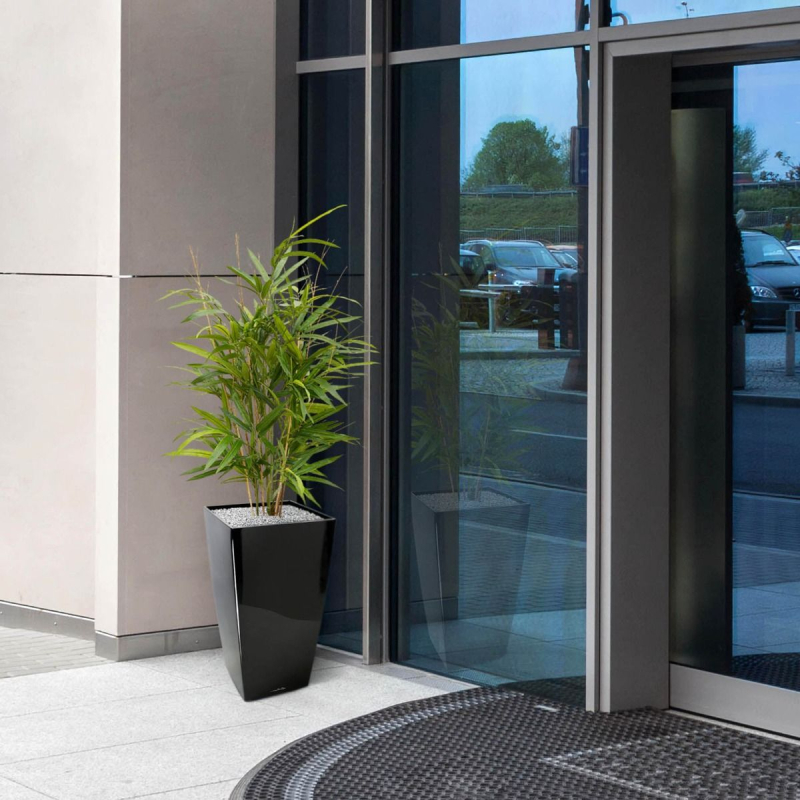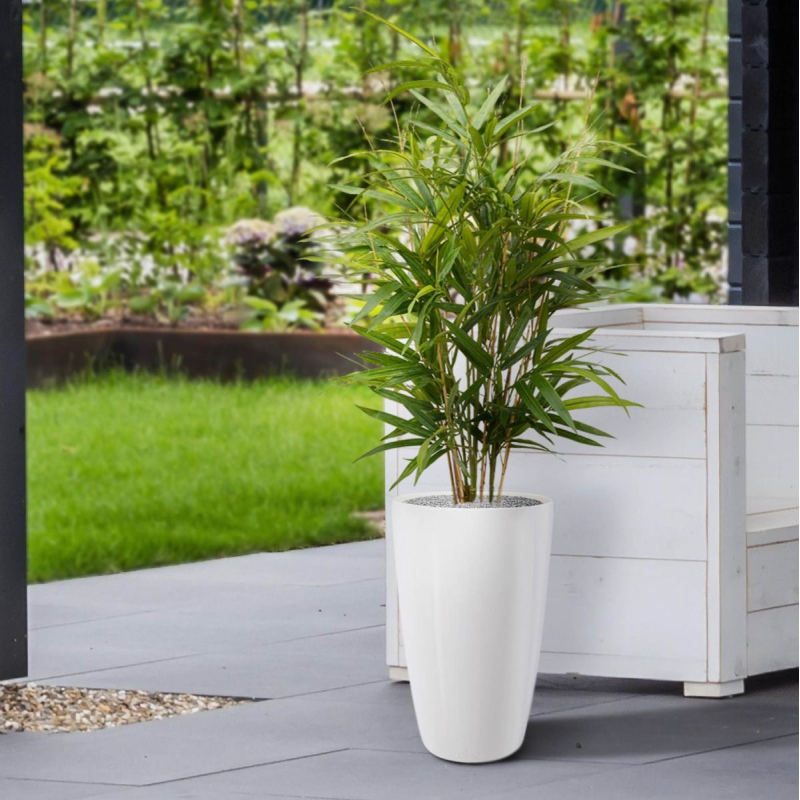 De Kunstplant Bamboe 70 cm wordt standaard geleverd in een eenvoudige zwarte plastic pot. Dankzij het compacte formaat is deze Royal Bamboe perfect te plaatsen in zowel lage als hoge sierpotten, op een dressoir, vensterbank of kantoor. (Let op: De afgebeelde sierpotten zijn optioneel en tegen meerprijs verkrijgbaar).