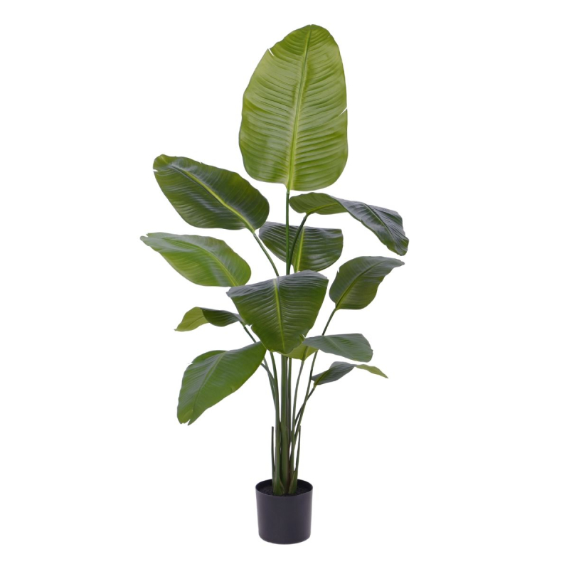 De Strelitzia Nicolai kunstplant 150cm is de meest imposante uitvoering in onze collectie, rechtstreeks geïnspireerd op de pracht van Zuid-Afrika. Deze fraaie, grote kunst kamerplant staat ook bekend als de 'Witte Paradijsvogelplant' en brengt een ongeëvenaarde tropische en luxe sfeer in huis.